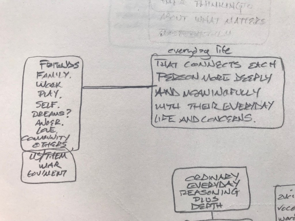 So we must address the idea that we all are living in a fascist society now, posing as democracy. Our own perceptions of who holds the power will differ. White people, wealthy white people, corporations who donate to candidates and adjust laws, and create them, to help their own consolidation and growth of power, etc. Well, this world I am describing is more like the one I grew up in than the one that exists today. My ideas are already old-fashioned, obsolete, etc. The world has a whole new set of rules and dynamics that have changed everything since I was young. Maybe some of the older ideas might be found useful by children in the future, our children of the future. So that is part of why I write—to push forward some thoughts that might be helpful, in a very pragmatic sense, or in a less tangible way. Who can say how a few words here and there might help?