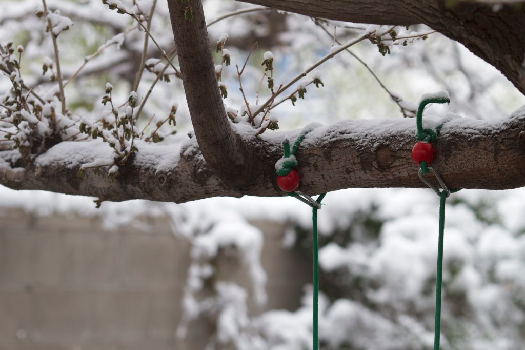 Rakes branches on the window.