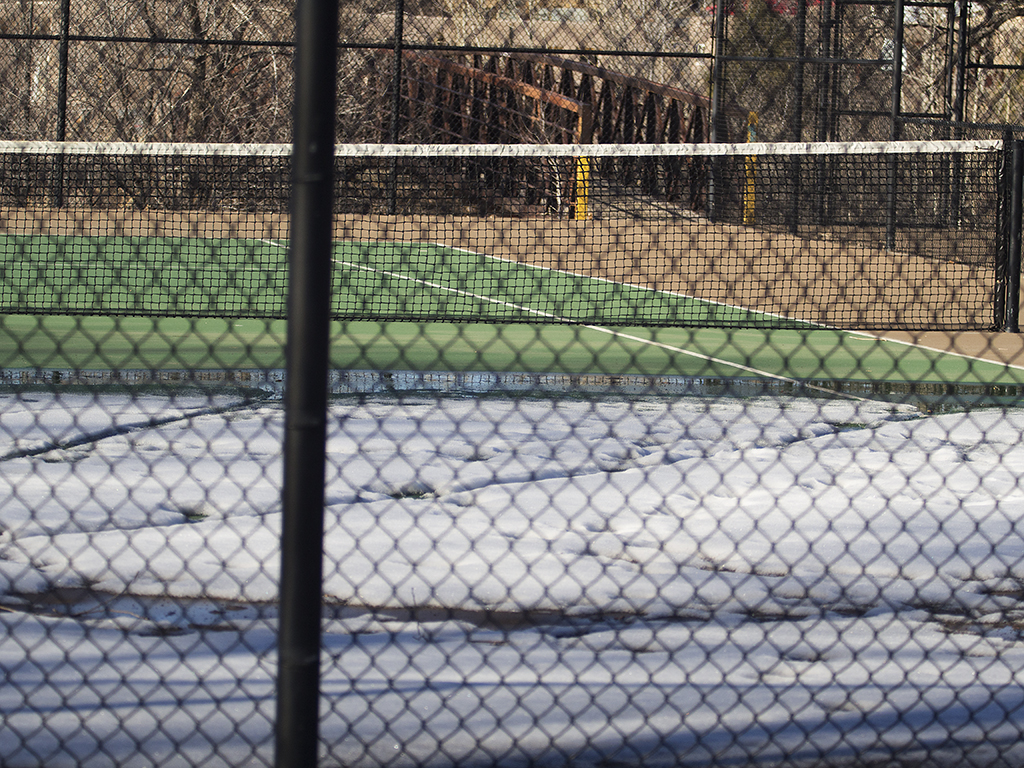 On the way to the park, I saw the straight lines of an iron bridge through a dense thicket of bare winter branches. Because the lens needs an adaptor to match the camera, I have to focus manually and adjust the shutter speed manually; the aperture is fixed at f/4. None of these are a problem. Similar to many other creative processes, constraints often end up being an advantage. I did my best to focus on the bridge beyond the branches. There is no eyepiece on this camera, and the display showing the potential photograph was hard for me to see. I found a composition and took a few images of it, turning the focus ring slightly between each image, hoping that one of the images would have the objects I was imagining in focus actually in focus. I found a few more compositions with the bridge and the branches and took a few images of each, hoping that one will be interesting when I look at them on a computer screen later on.